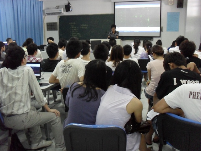 为使参加算量大赛的同学充分认识了解算量大赛的内容,学会使用计算软件,公司专门邀请老师在比赛前为同学进行培训。上午8点,培训班在7B413正式开始。由于此次报名算量大赛的同学人数很多,培训机房座无虚席,很多同学站在后门听老师讲课。虽然天气炎热,但丝毫没有影响同学们的求知热情,在老师的认真讲解下,同学们的算量水平有了很大的提高。
