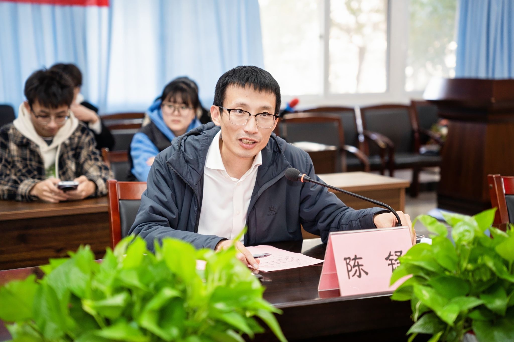 陈建德先生讲话。他讲到同学们很幸运,生活在幸福的年代,拥有雄厚团队力量和良好的校园氛围,希望大家能珍惜现有资源,努力学习,刻苦钻研,助推国家解决技术“卡脖子”问题;要有责任心,关心社会,关心国家大事,成为一个爱国家、爱家人、爱自己的人!