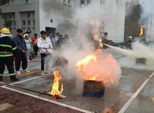 保卫处的老师在7号楼室外准备了火源和灭火器,宣讲了消防知识及灭火器的使用,老师和员工们亲自操作使用了灭火器。