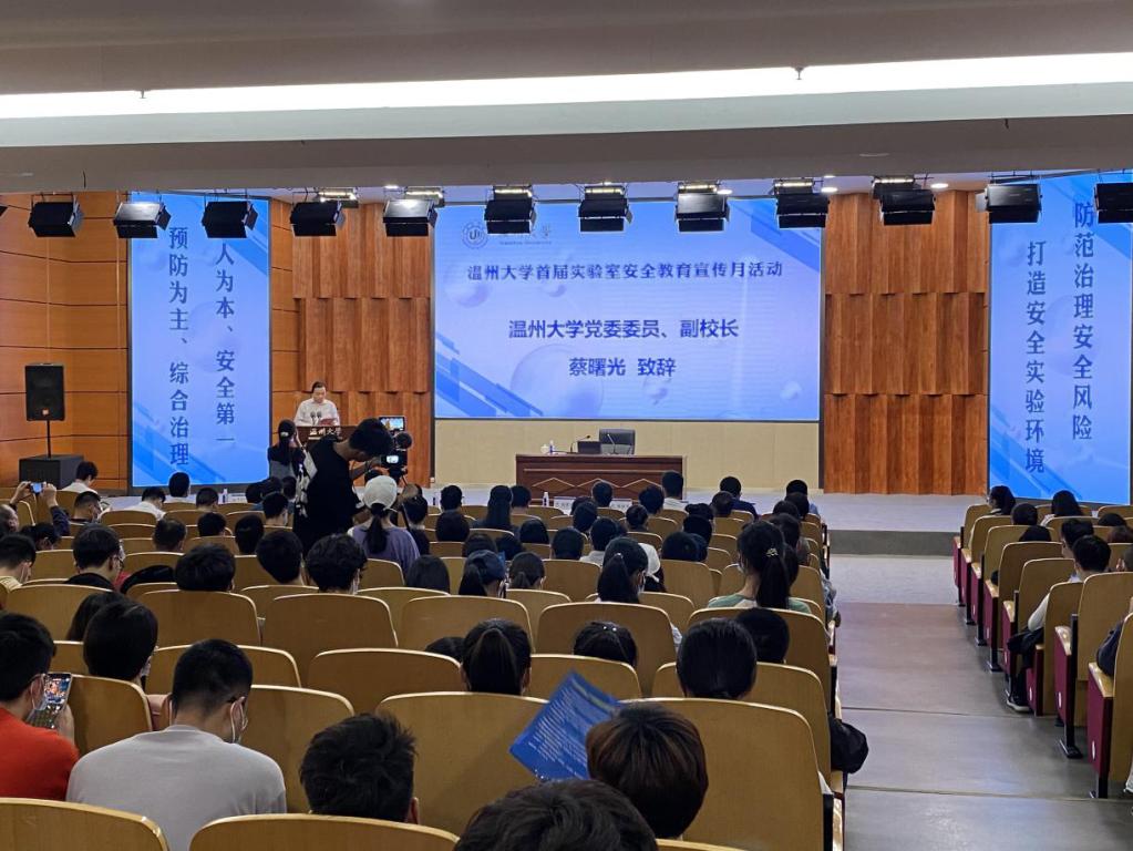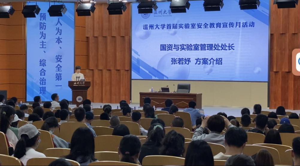 开幕式上张若妤处长详细介绍了举办实验室安全教育宣传月活动的目的和内容,强调实验室安全工作的重要性,特别强调要牢固树立安全发展理念,弘扬“生命至上、安全第一”的思想,落实“以人为本、安全第一、预防为主、综合治理”的工作方针,着力推进实验室安全“四个机制”(长效、预防、责任、协同)内涵建设,营造“安全稳定、生态良好”的实验环境,为“平安温大”建设提供实验室安全保障。